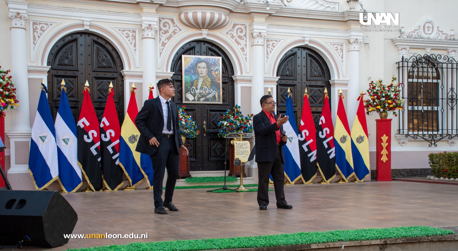 “El legado de Rubén Darío trasciende la literatura, es símbolo de identidad nacional, de dignidad cultural y de unidad nicaragüense, su pensamiento sigue vivo en nuestras aulas, en nuestras universidades y en cada joven que descubre en la palabra una herramienta de transformación”, manifestó la compañera Ana Cecilia Chévez, rectora de UNAN-León, en sus palabras de saludo.
