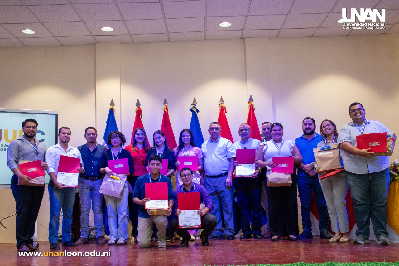 Certificados, medallas y diferentes estímulos fueron entregados a más de 30 equipos ganadores en la XLIII Jornada Universitaria de Desarrollo Científico (JUDC) 2025, dicha entrega se realizó este siete de noviembre desde el auditorio del Edificio Blanca Stella Aráuz, conmemorando el 49 aniversario del tránsito a la inmortalidad del Cmte. Carlos Fonseca Amador.