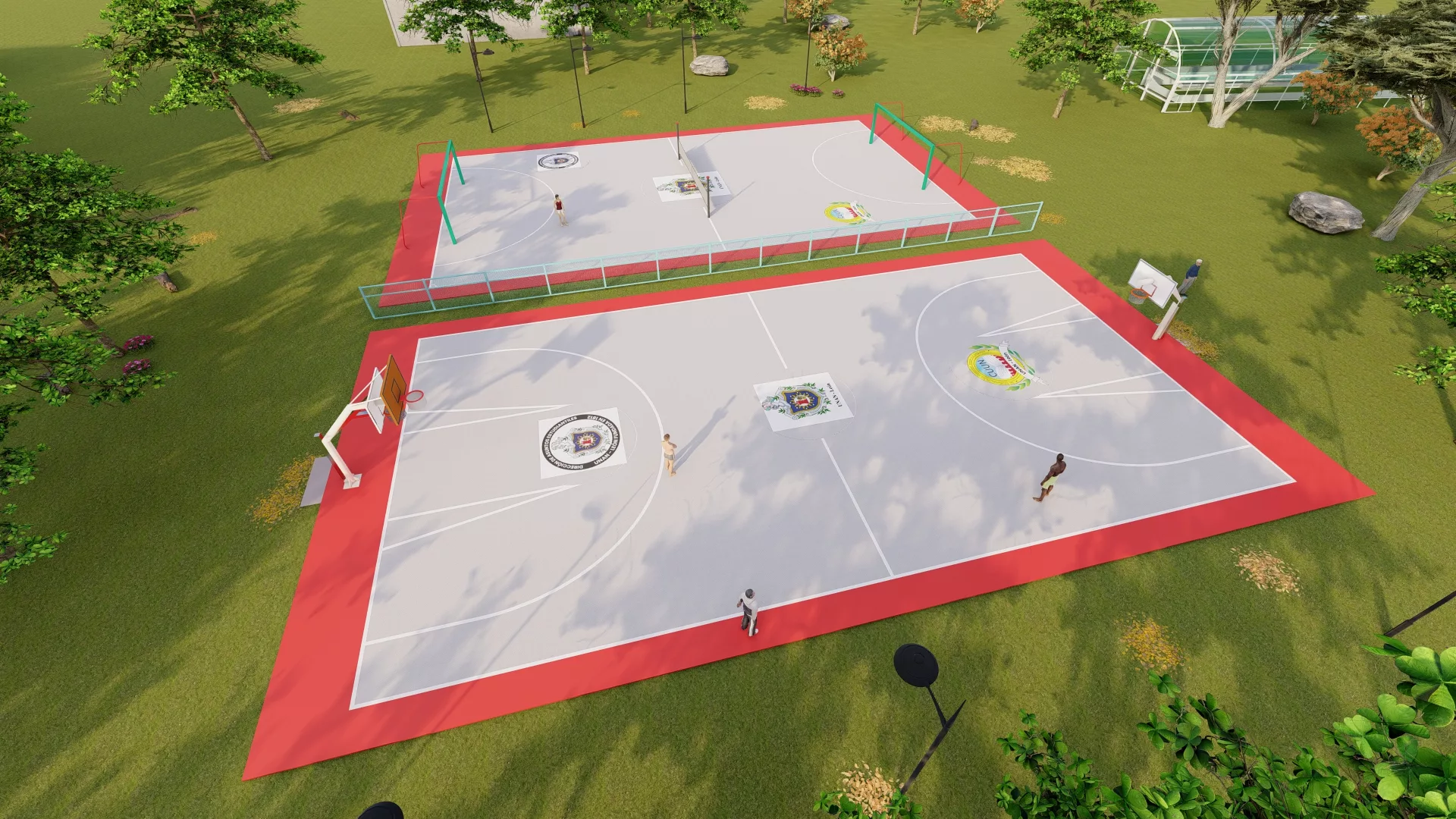 La cancha consta de 2 espacios deportivos, el primero para la disciplina de baloncesto y el segundo para las disciplinas de fútbol sala y voleibol, todo como parte de la restitución del derecho a la sana recreación y esparcimiento, el que es promovido por el Gobierno de Reconciliación y Unidad Nacional, presidido por el Cmte. Daniel Ortega y la Cra. Rosario Murillo.